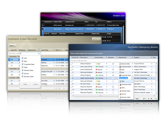 Intersoft ClientUI includes powerful data controls that let you easily build rich data applications for the Silverlight and WPF platforms. The ClientUI data controls are built to adhere to the industry's best practice in design and architecture such as full support for MVVM design pattern. The data controls include powerful features that enable high-performance data application by taking advantage of server data operation such as server paging and server filtering.