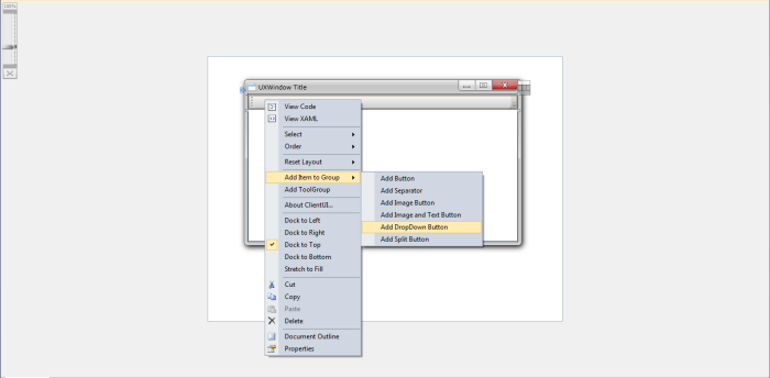 This section show how to add button, splitbutton and drodpwn button to UXToolBar using designer.