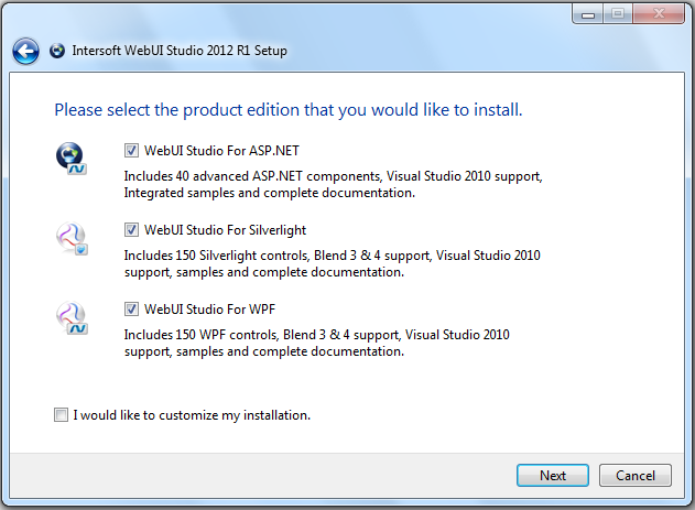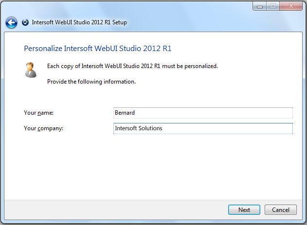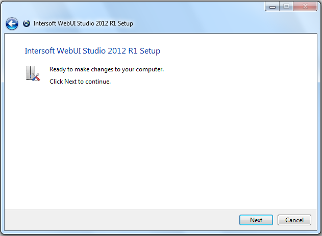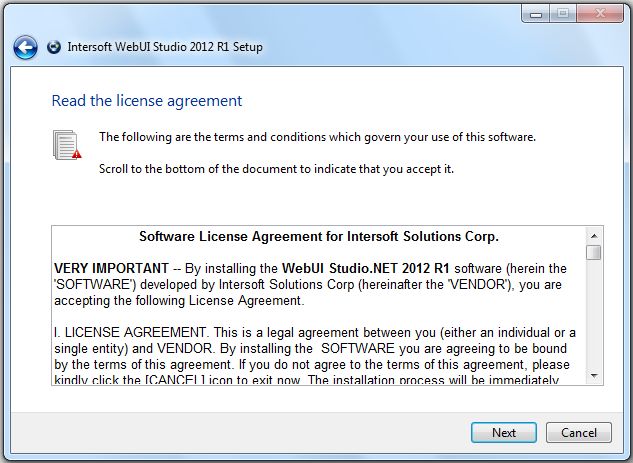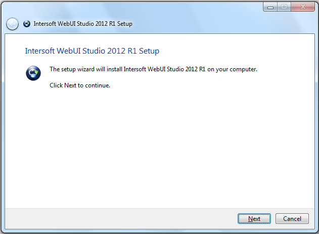 - Double click on the "Intersoft WebUI Studio 2012 R1.exe" icon to start the installation process. Read the instructions, and click next.