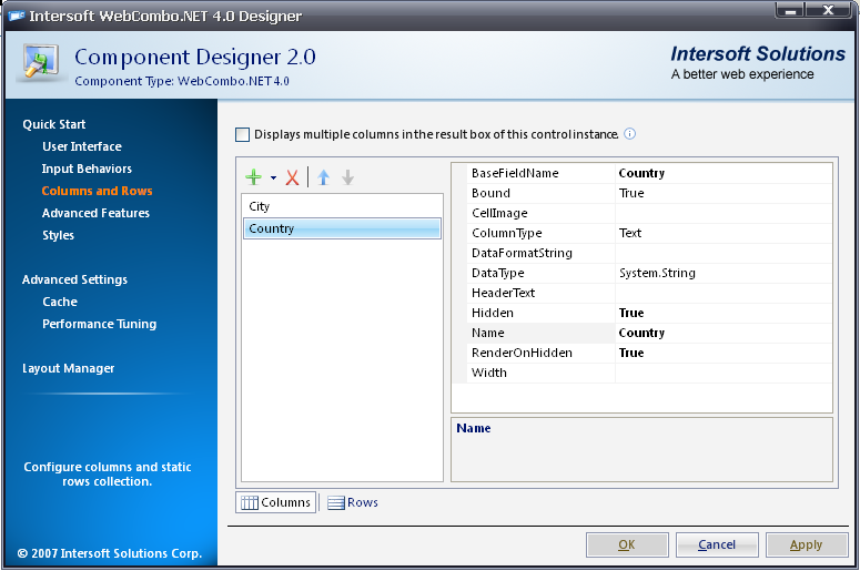 - Right click on WebCombo2 to open WebCombo.NET Designer - Columns and Rows.