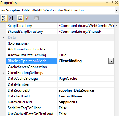 - Select an instance of WebCombo in designer surface.