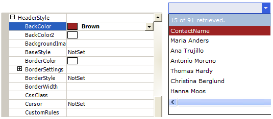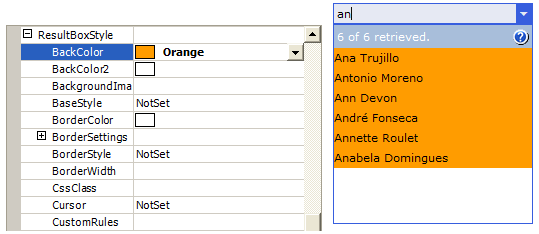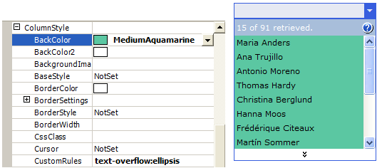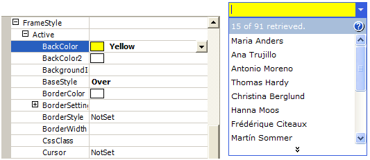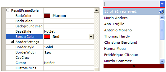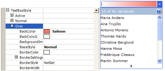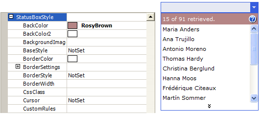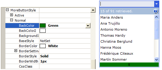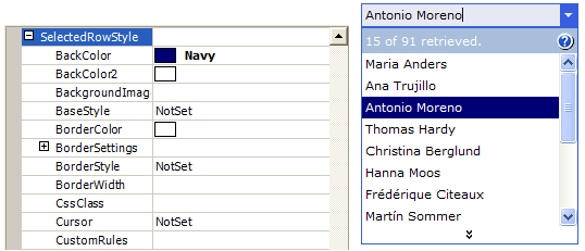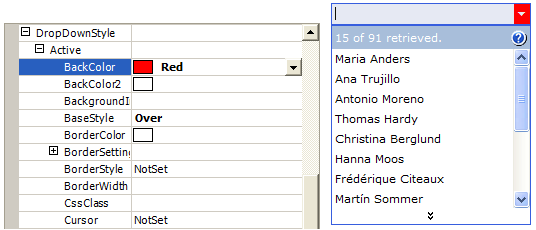 WebCombo provides comprehensive look & feel customization settings which allows you to customize most of the UI elements in the WebCombo control. You can change the styles directly by using either the provided style properties or control the WebCombo's appearance globally by specifying the CSS class name.