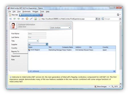 The following screenshot demonstrates the WebCombo in Opera 9.5 browser.