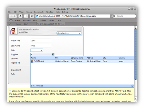 The following screenshot demonstrates the WebCombo in Safari for Windows.