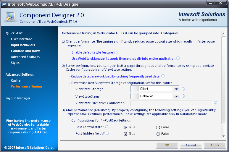 WebCombo.NET V4.0 designer also provides you with Performance Tuning ability that will help to improve the performance for WebCombo.