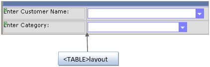 The following illustration shows the design using TABLE layout. Notice that text and WebCombo are contained in separate cells.