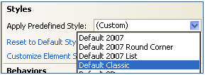 You can continue to use classic style of WebCombo by applying the classic style from predefined style. When you do so, the Default Style feature will be automatically turned off. The styles definition will be embedded back to the control since WebCombo treats any predefined styles as custom style.