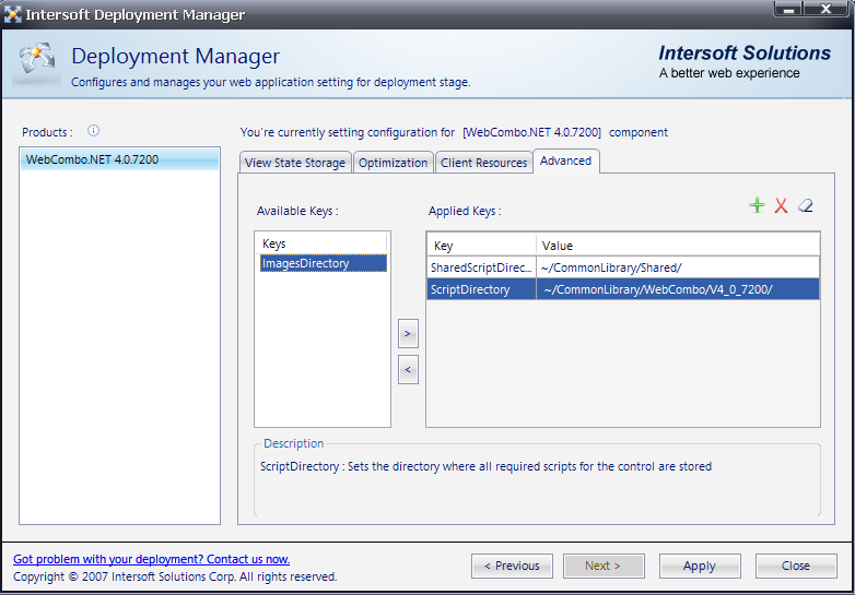 Key Value ScriptDirectory ~/CommonLibrary/WebCombo/V4_0_7200/ SharedScriptDirectory ~/CommonLibrary/Shared/ ImagesDirectory ~/CommonLibrary/Images/