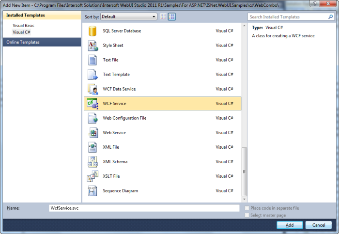 This walkthrough shows you how to configure Client binding using WcfService mode in WebCombo.