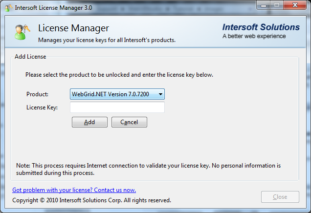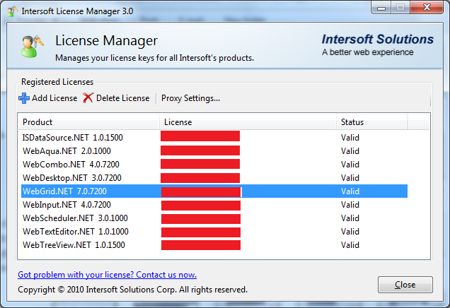 License Manager is a tool designed to manage your license keys for all Intersoft's