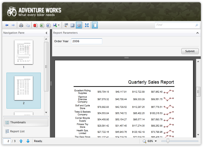 In addition, SqlReportViewer provides a number of advanced features to work with SQL reporting service report such as background loading feature which is designed to handle relatively large report, report navigation, and report browser.