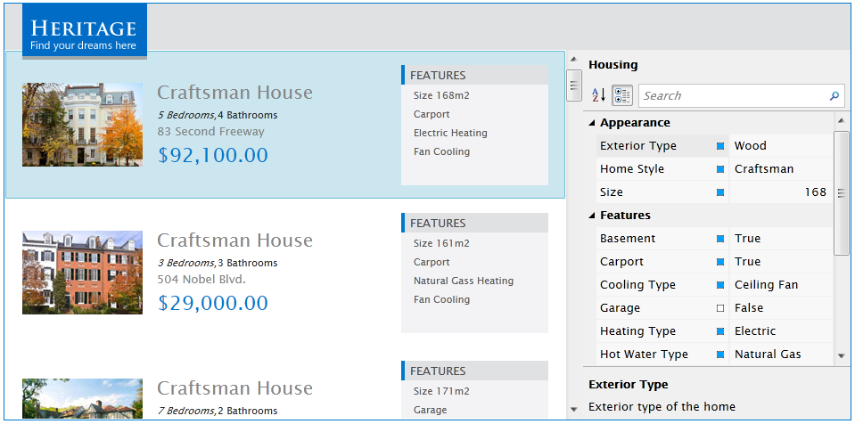 UXPropertyGrid is an advanced editor control which provides an easy way to dynamically handle a vary types of objects instead of writing a custom view for each type. Designed to display a large number of properties, UXPropertyGrid implements VirtualizingStackPanel to solve the performance issue which may occur when dealing with large objects. UXPropertyGrid also comes with customizable editors which makes it possible to fit in various user specific scenarios. To improve its performance, UXPropertyGrid also will reuse the existing editors for different properties that use the same editor type to avoid object creation overhead.