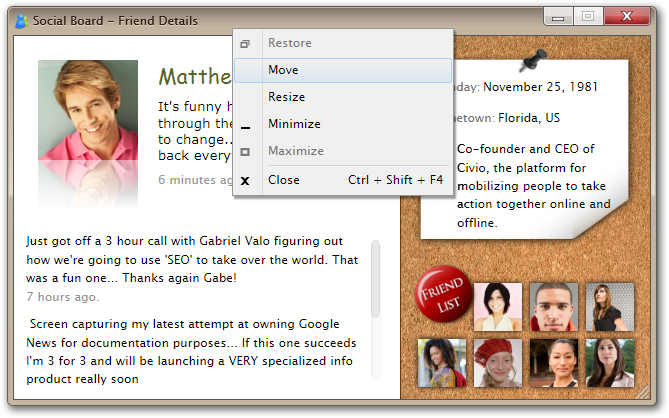 UXWindow is a state-of-the-art windowing control featuring full ISO-standards compliance in usability, focus management, and user experiences. Many of the modern windowing features can be found in UXWindow, ranging from window controls such as minimize and maximize, moving, 8-direction resizing, to context menu and fully-customizable window appearance.