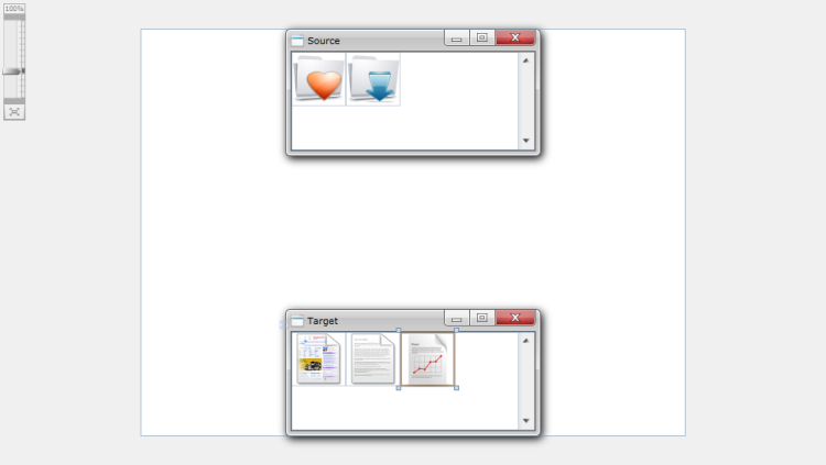 <Grid x:Name="LayoutRoot"> <Intersoft:UXWindow Header="Source" Height="150" Width="300" HorizontalAlignment="Center" VerticalAlignment="Top" IsClientVisible="True" IsActive="True"> <Grid> <Intersoft:UXScrollViewer Name="uXScrollViewer1"> <Intersoft:WrapPanel Name="wrapPanel1"> <Image Name="image1" HorizontalAlignment="Left" VerticalAlignment="Top" Height="64" Width="64" Source="/DragDropAPI;component/Assets/Images/Favorite.png" MouseLeftButtonDown="Image_MouseLeftButtonDown" MouseMove="Image_MouseMove" MouseLeftButtonUp="Image_MouseLeftButtonUp" /> <Image Name="image2" HorizontalAlignment="Left" VerticalAlignment="Top" Height="64" Width="64" Source="/DragDropAPI;component/Assets/Images/Download.png" MouseLeftButtonDown="Image_MouseLeftButtonDown" MouseMove="Image_MouseMove" MouseLeftButtonUp="Image_MouseLeftButtonUp" /> </Intersoft:WrapPanel> </Intersoft:UXScrollViewer> </Grid> </Intersoft:UXWindow> </Grid> |