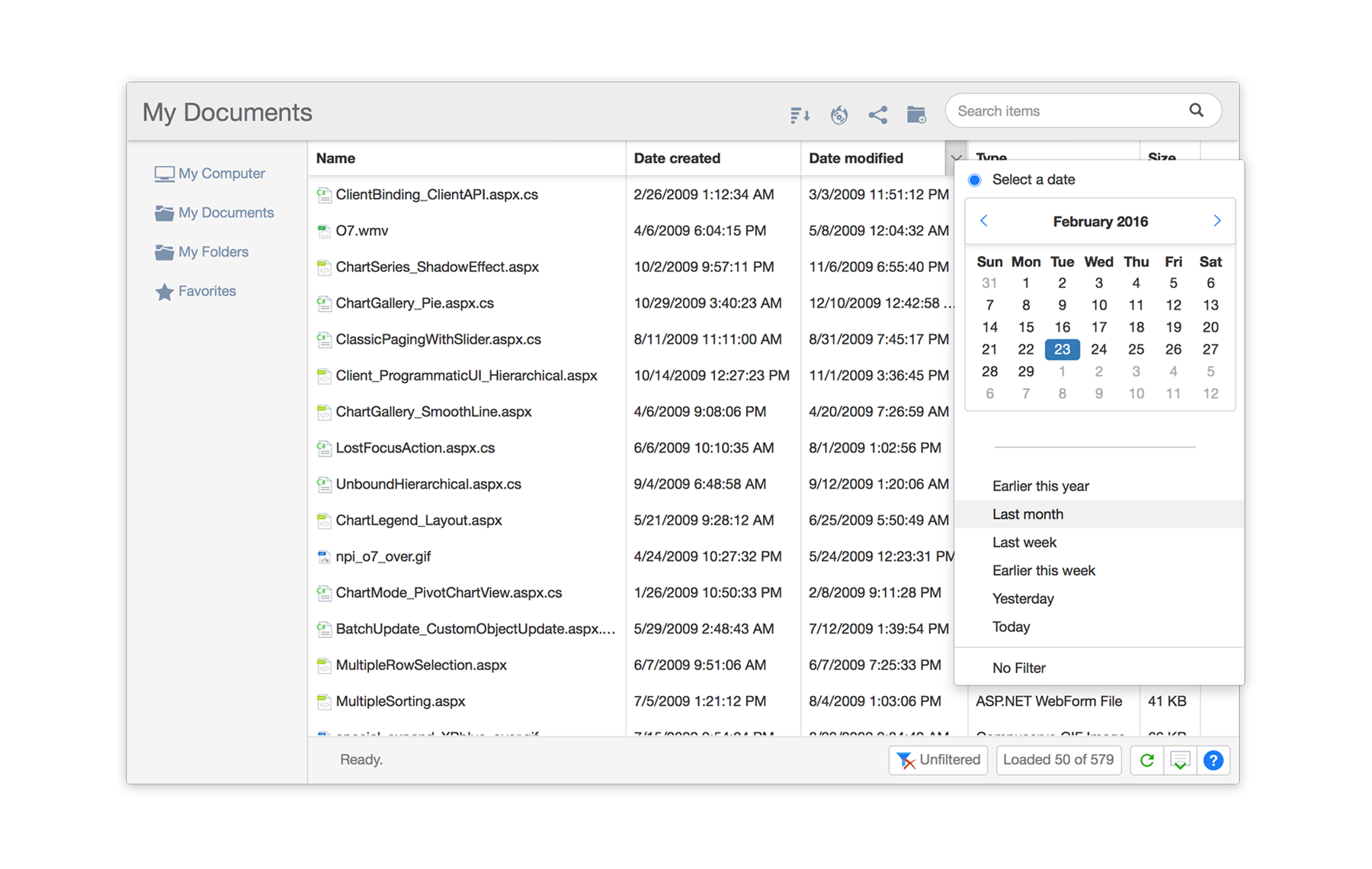 In addition to many runtime enhancements, WebGrid 10 also includes a redesigned filter bar that is more responsive and works identically across major modern browsers.