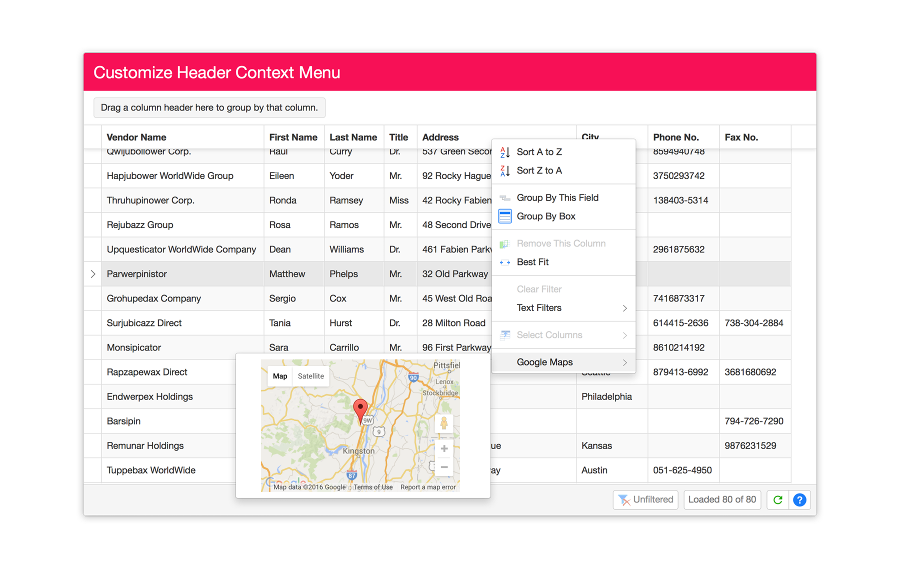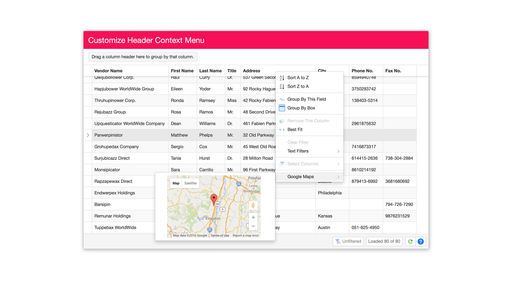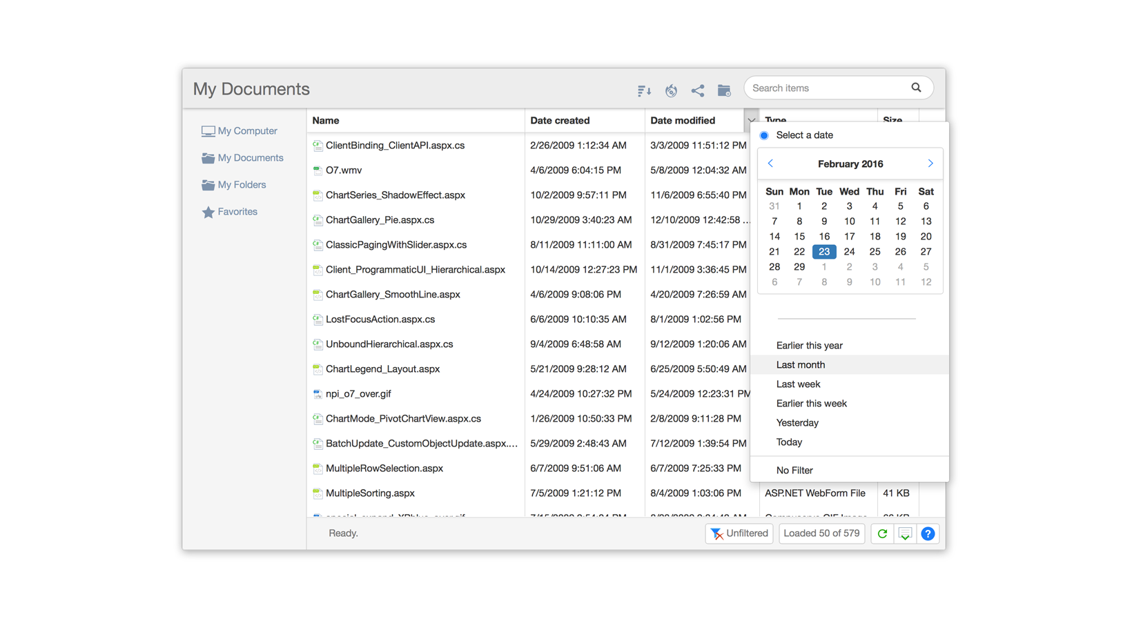 Windows 8-style column action shortens the access to several common WebGrid features such as sorting and grouping. When user hovers through a column header, the clickable visual indicator will appear. Even better, the Vista-style is also customizable. This means you can control what you want to show in the column action UI. Learn more.