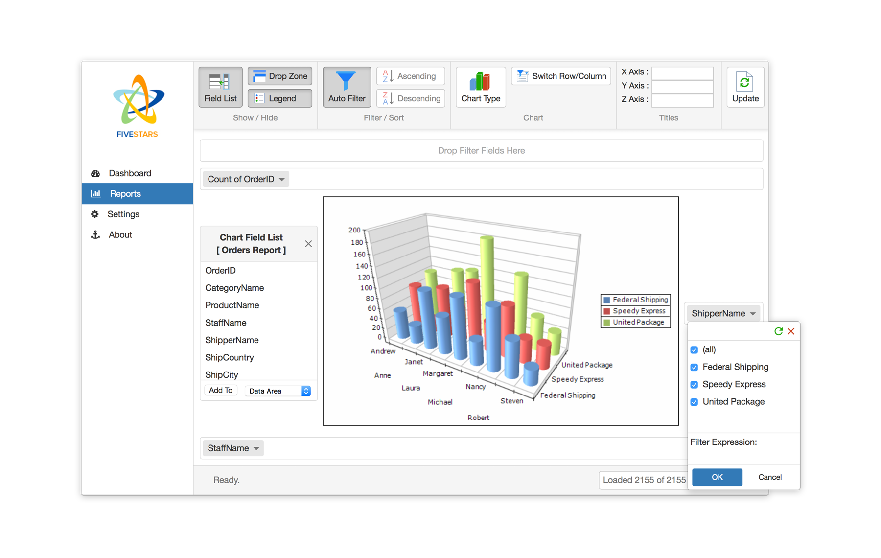 The Pivot Chart is thoroughly enhanced to display your data in a more intuitive presentation style.