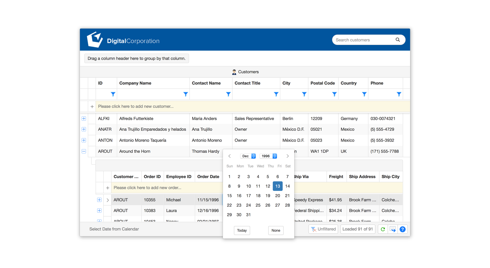 Captivating style, a user-friendly interface, powerful performance, and swift data handling are packed into the all new WebGrid. With new visual UI themes, column action UI, a Windows 7-style calendar editor, WebTextEditor integration, and much more to provide a user experience of unprecedented excellence. Learn more.